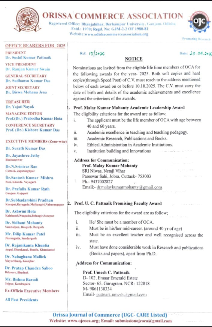 Executive Committee meeting of OCA on 14.09.2025 at Ravenshaw University, Cuttack.